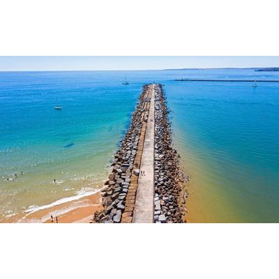 note: A low wall or sturdy barrier built out into the sea from a beach to check erosion and drifting. Late 16th century from dialect groin ‘snout’ from Old French groign.
