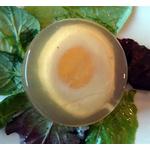 note: A savory jelly usually made with meat or fish stock and gelatin. Normally chilled and used as a garnish and coating for meats seafoods eggs etc.