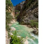 - a deep narrow valley with steep sides and often with a stream flowing through it