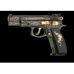 'Pistol' is a word borrowed from Czech 'pišt'ala'. The word entered the English language some time around 1570.