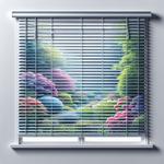 - a blind with adjustable horizontal slats for admitting light and air while excluding direct sun and rain
