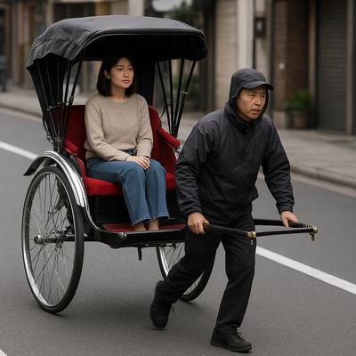 note: jin means man - riki means strength or power and sha means carriage. Rickshaws originated in Japan where they were first used in the late 1800s.